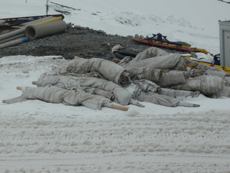 Rollen mit Gletschervlies am Hintertuxer Gletscher.