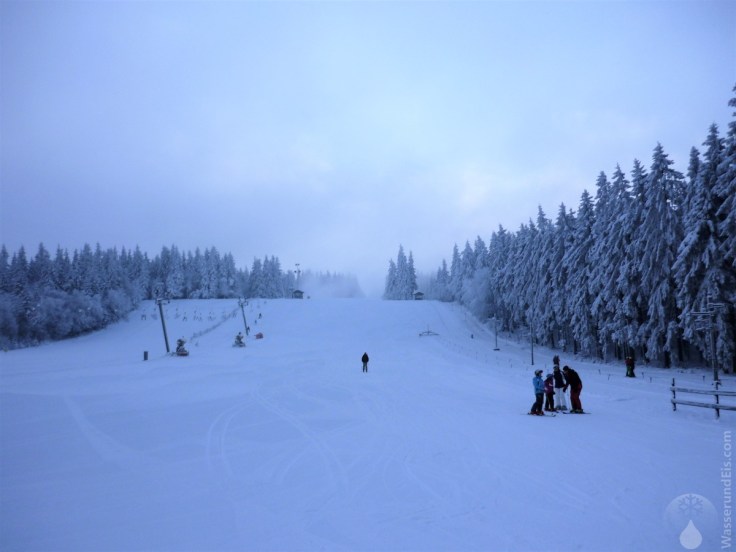 Der Wintersportpark Sahnehang besteht aus einer Skipiste (770-830m, 500m lang) sowie einem Rodelhang. Der Hang selbst ist bis auf ein (sehr) kurzes Steilstück arg flach, dafür aber schneesicher. Auf dem langen Flachstück in der Mitte muss man unter Umständen auch mal anschieben – kein wirkliches Wintersportparadies also, aber man nimmt was man kann.