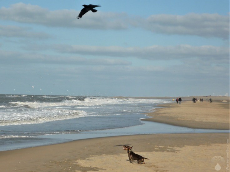 Wie auch immer, während wir die Seeluft und das Rausschen des Meeres genießen, läuft unser Hund zur Hochform auf. Der Vierbeiner ist zum ersten Mal in seinem Leben am Meer. So viel Sand auf einem Haufen, dass hat er sich sicherlich bis dato nicht vorstellen können. Ein Untergrund der zum laufen, ja zum rennen anregt. Sand unter den vier Beinen macht Munter – auch 10 Jahre später nach unzähigen Strandbesuchen. Doch auch das auf und ab der Wellen hat es ihm angetan, die schaumigen Kronen lassen sich prima jagen – allerdings auf schwer erlegen.