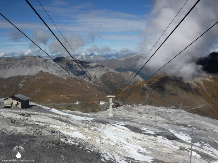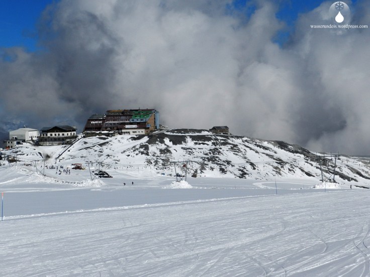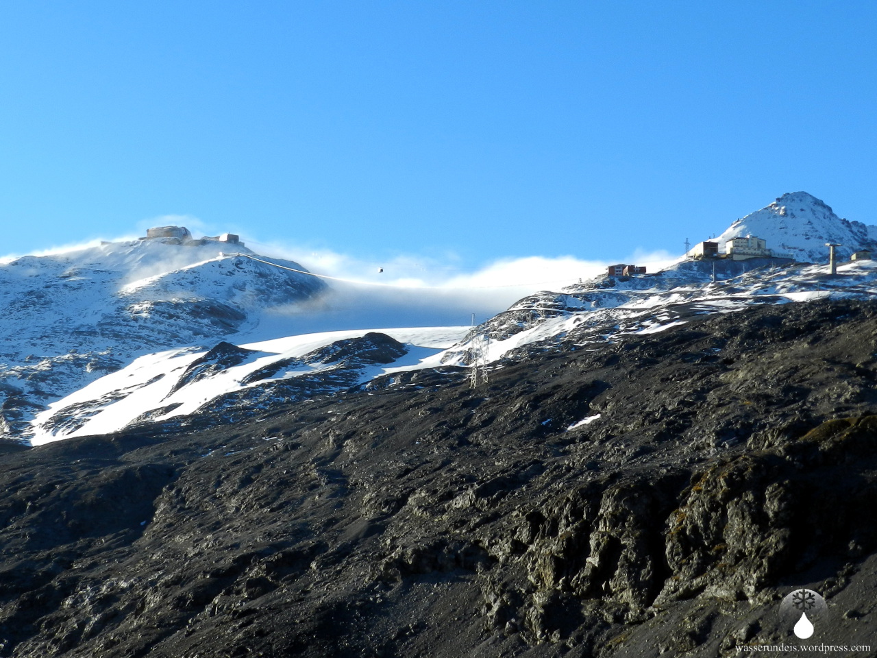 Oben angekommen werde ich von der etwas eingenwilligen, ja etwas aus der Zeit gefallenen Infrastruktur begrüßt. Die Hochzeit des Sommersskilaufs liegt eben doch schon ein paar Jahre zurück. Trotzdem, nicht unsympatisch, gerade diese Kulisse gehört hier oben einfach dazu. Aber, früher war nicht alles besser, eigentlich vieles nicht…