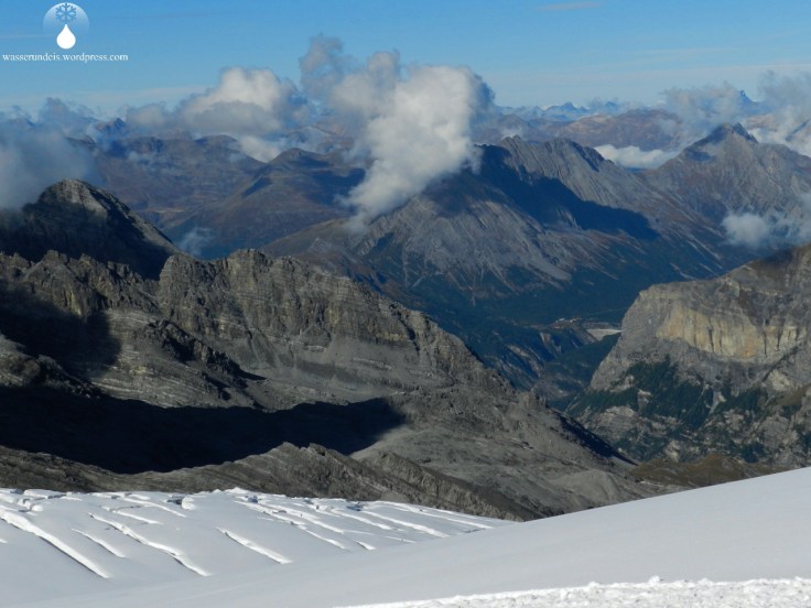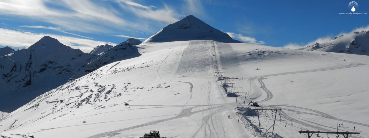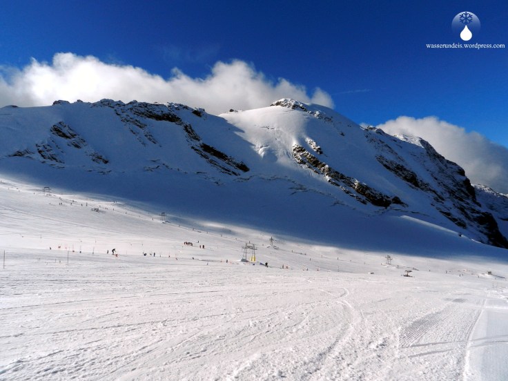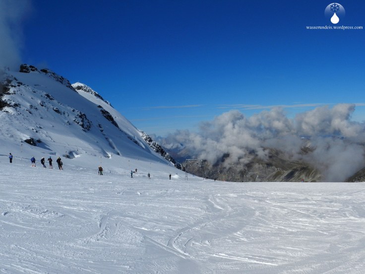 Die Geisterlifte führen hinauf bis ca. 3370m – früher waren es mal ein paar Meter weiter. Die Pisten sind typische Gletscherautobahnen. Weder besonders flach oder steil, dafür aber breit gewalzt und kaum kuppiert, jedoch überwiegend durch Rennteams belegt, die hier ihre Kurse gesteckt haben.