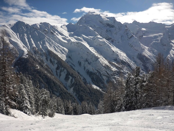 Das Trafoier Skigebiet (1.580-2.383m), treffender Weise „Schönblick“ benannt, bricht keine Superlative. Drei Liftanlagen erschließen ein eher kleines Gelände am Südhang oberhalb des Dorfes. Für seine geringe Größe bietet das Gebiet allerdings tolle, abwechslungsreiche Abfahrten mit vergleichsweise großen Höhenunterschieden. Atemberaubend ist jedoch das omnipräsente Panorama auf die Ortlergruppe. Der Blick schweift vom Ortler (3.909) über Thurnwieser (3.652) und Trafoier Eiswand (3.565m) bis zu den weiten Gletscherflächen am Stilfserjoch.