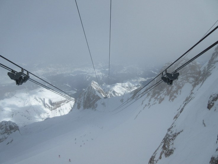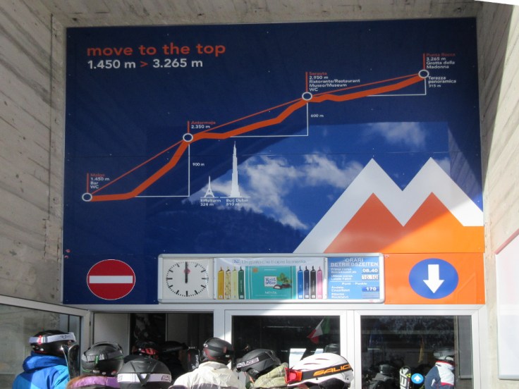 Die Marmolata bildet bei weitem dem höchsten Punkt des Sella Ronda Gebietes. Trotz dieser Tatsache, der Sicht über das Dolomitenmeer, fand ich das Panorama andernorts spektakulärer. Gipfel wie zum anfassen gibt es hier oben keine. Wie auch immer, 8.500m Abfahrt auf 1.780 Höhenmeter – das sollte man mal gemacht haben.