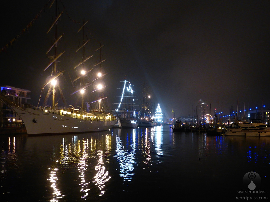 Am Abend geht es noch einmal auf das Veranstaltungsgelände rund um Alten-, Neuen- und Kaiserhafen. Die Segelschiffe liegen inzwischen, fest vertäut an den Kajen. Der Hafen ist zum bersten gefüllt. Trotzdem oder gerade deshalb ist immernoch die ganze Stadt samt zehntausenden Besuchern auf den Beinen und ganz ehrlich, ich kann es verstehen. Die unzähligen Segler, das Gewirr aus Masten und Segeln sind schon ein toller Anblick. Das ohnehin schon maritime Bremerhaven ist derzeit die Hauptstadt der maritimen Welt.