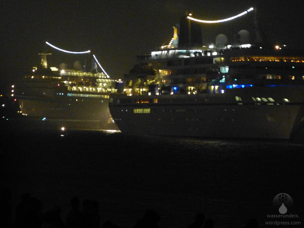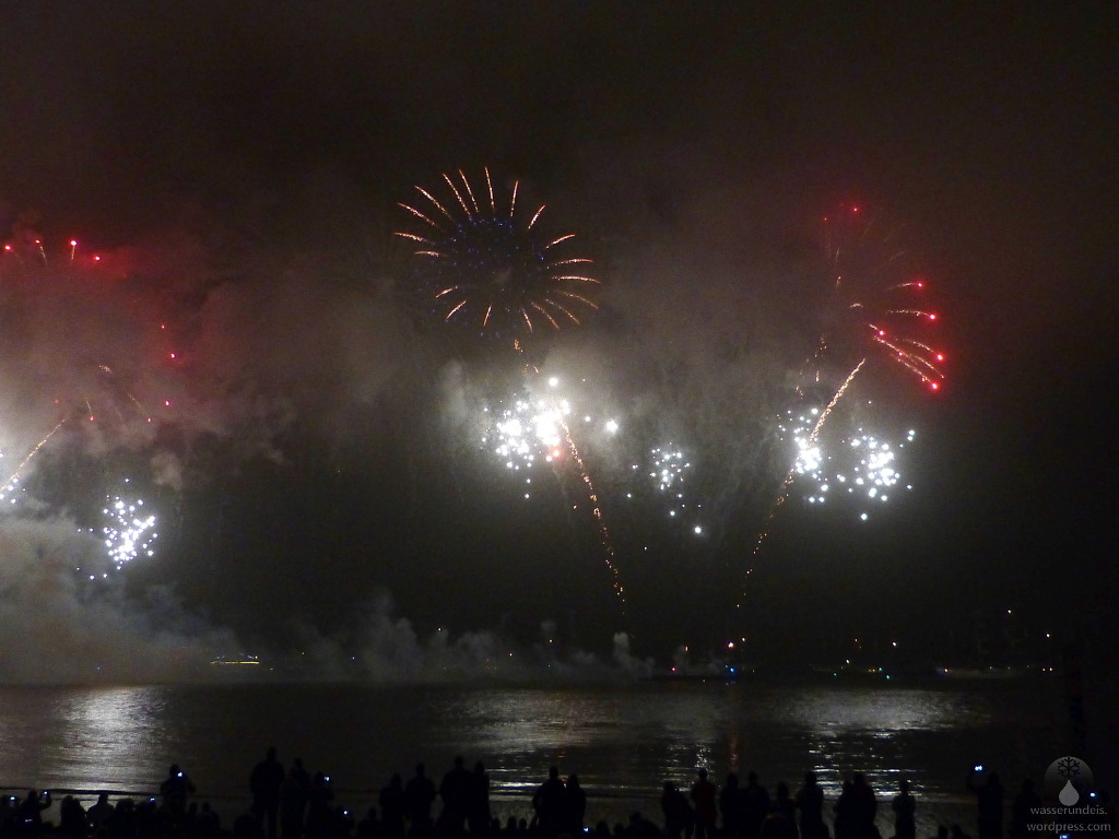 Zum Finale der Sail kehrten wir noch einmal zurück. Der letzte Abend gehört dem großen Feuerwerk auf der Weser. Auch wenn die Feuerwerke an den Vorabenden kaum als „klein“ bezeichnet werden können, das heutige sollte die vergangenen nochmals um längen toppen. Im Gegensatz zu den Vortagen findet das heutige Feuerwerk nicht am Weserstrandbad sondern auf der Außenweser, vor dem Lohmanndeich statt, was eine gute Idee ist, denn es ist voll – wirklich voll. Der Weserdeich ist etwas kürzer, fasst weniger Menschen. Dazu haben sich auch einige Kreuzfahrtgiganten der Phoenix-Reederei gesellt, die vor allem in der Dunkelheit ein hübsches Bild abgeben. Das folgende Feuerwerk rundet die Sail 2020 perfekt ab.