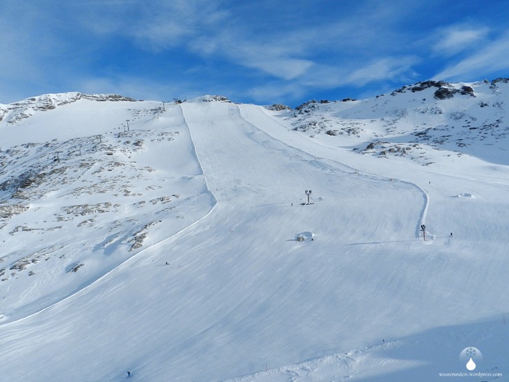 Ein wirklich nettes kleines Gletscherskigebiet. Einmalige Aussicht, Gletschertypische Pistenautobahnen und endlich schön zu fahrender Schnee, wenn auch mit hohem Kunstschneeanteil. Aber immerhin – es hat überhaupt einen Naturschneeanteil.