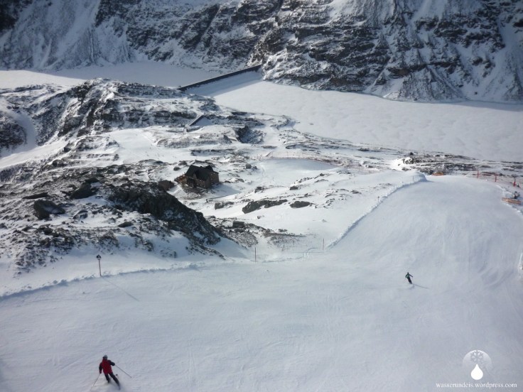 Etwas grenzwertig ist vielleicht der Aufwand der nötig war, um den kleinen Gletscherrest des Wurtenkees‘ zu erschließen. Wie auch immer, ohne den Wurtenspeicher hätte es das in diesem, ansonsten zuvor unberührten Hochtal sowieso nicht gegeben. Auch wenn vieles etwas aus dem Berg gemeißelt wirkt und wohl auch ist und der „Gletscher“ nur noch dank massiver Beschneiung existiert. Hochalpine- dazu noch etwas abgelegene Gebiete gefallen mir einfach. Wenn sich dann noch breite Pistenautobahnen und wenig Betrieb hinzugesellen ist der Skitag perfekt.