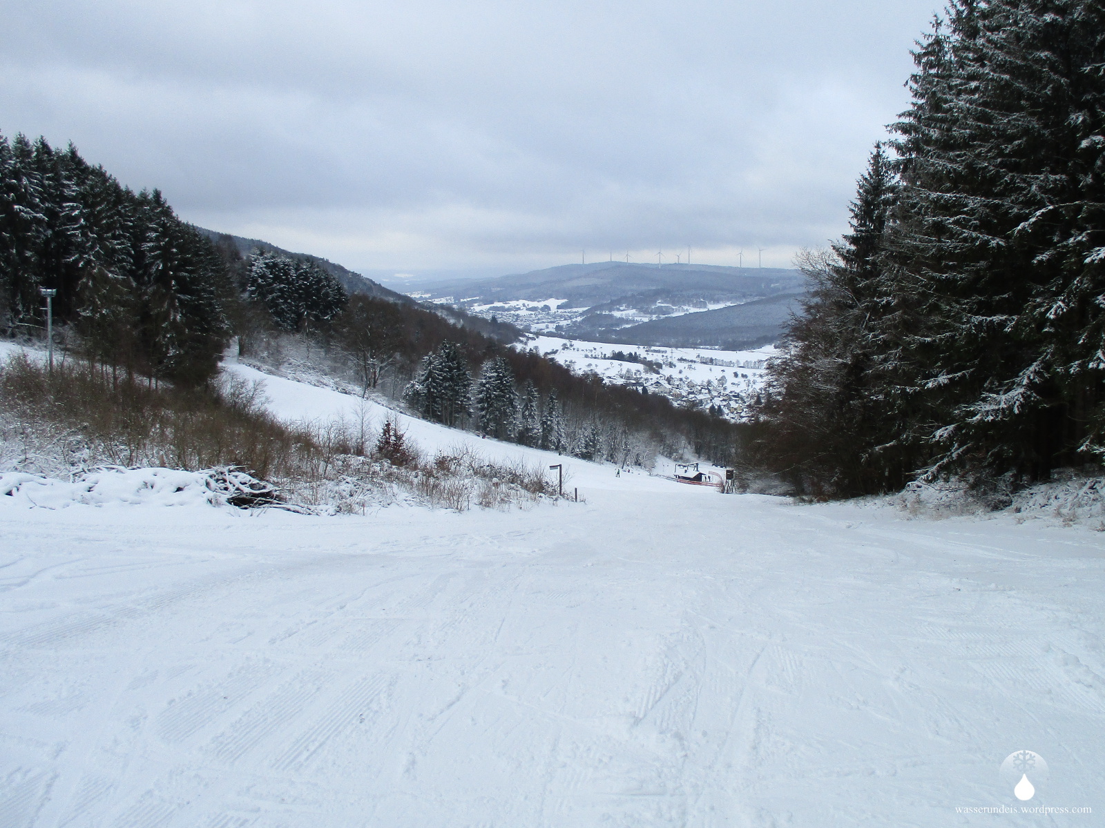 Der Eiershäuser Hang präsentierte sich heute nur teilweise präpariert. Eigentlich nur im unteren, flachen Drittel der einfachen Abfahrt. Für eine Präparation der gesamten Piste schien nicht ausreichend Schnee zu liegen. Die Pistenraupe hätte vermutlich eine ganze Menge Dreck und Erde an die Oberfläche befördert, die Bedingungen eher verschlechtert.