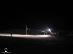 Die Anfahrt bis Karsee verläuft problemlos. Ab hier ist der Lift, in der Dunkelheit, allerdings schwer zu finden. Im Dorf informiere ich mich anhand einer Karte und treffe gleich auf den nächsten Ortsunkundigen Wintersportler. Gemeinsam finden wir dann zum Skihang, der trotz des in kürze beginnenden Flutlichtbetriebes noch völlig im Dunkeln liegt. An der Talstation, im Scheinwerferlicht des Autos, sind aber bereits dutzende, wartende Skifahrer zu erkennen. Kurze Zeit später ist die Piste in gleißendes Scheinwerferlicht getaucht. Die Abendkarte für 9€ ist erstanden, der Spaß beginnt.