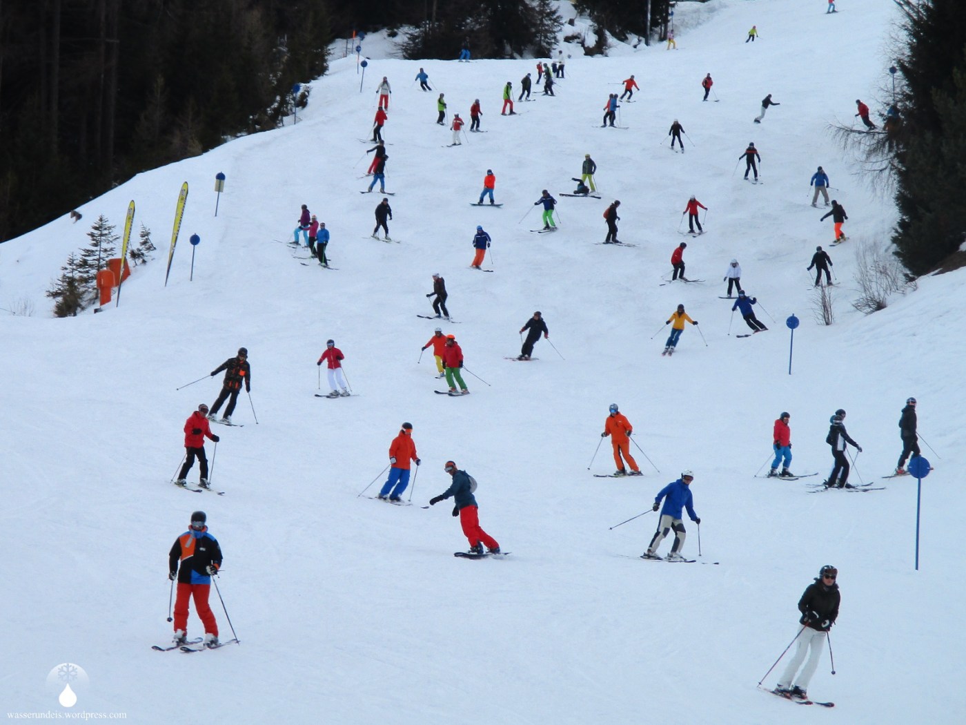 Das Gebiet an sich ist durchaus abwechslungs- und aussichtsreich – allerdings voll und überwiegend nicht besonders ansehnlich. Die Pisten schnell aufgefahren, teilweise kommt auch schon der Untergrund durch. Für ein Gebiet dieser Preisklasse ein NoGo. Dazu kommt, hier fehlt jetzt die Objektivität, das Wetter. Im Regen wirkt das Gebiet noch trister als ohnehin. Ein Lichtblick ist das Après Ski. Auch wenn es etwas teurer zugeht als in den Hütten von Schladming oder Obertauern. Der typische Aprèsski-Schlager ist hier eine Randerscheinung. Natürlich laufen auch hier die größten Partyhits, allerdings nicht in der gewohnten Taktung und in einigen Hütten durchsetzt mit Live-Musik. Grund ist sicher das internationale Publikum. Toll ist die Lage an den Pisten. Die meisten Locations tummels sich rund um den Moserwirt, der wohl bekanntesten Aprèsskihütte am Arlberg. Gute 100m Höhenmeter oberhalb von gilt es nach der Feierei noch den Weg über verbuckelte Pisten ins Tal zu finden – eine Mordsgaudi.