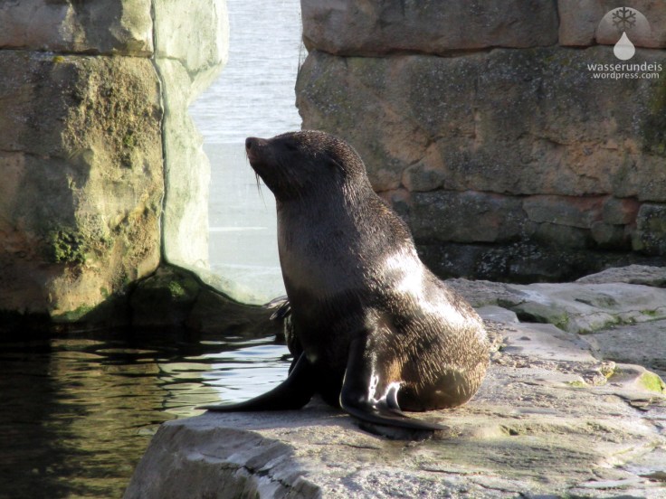 Gehege ohne Gitter und Wasserbecken mit großen Scheiben ermöglichen es die Tiere in beiden Elementen zu beobachten.