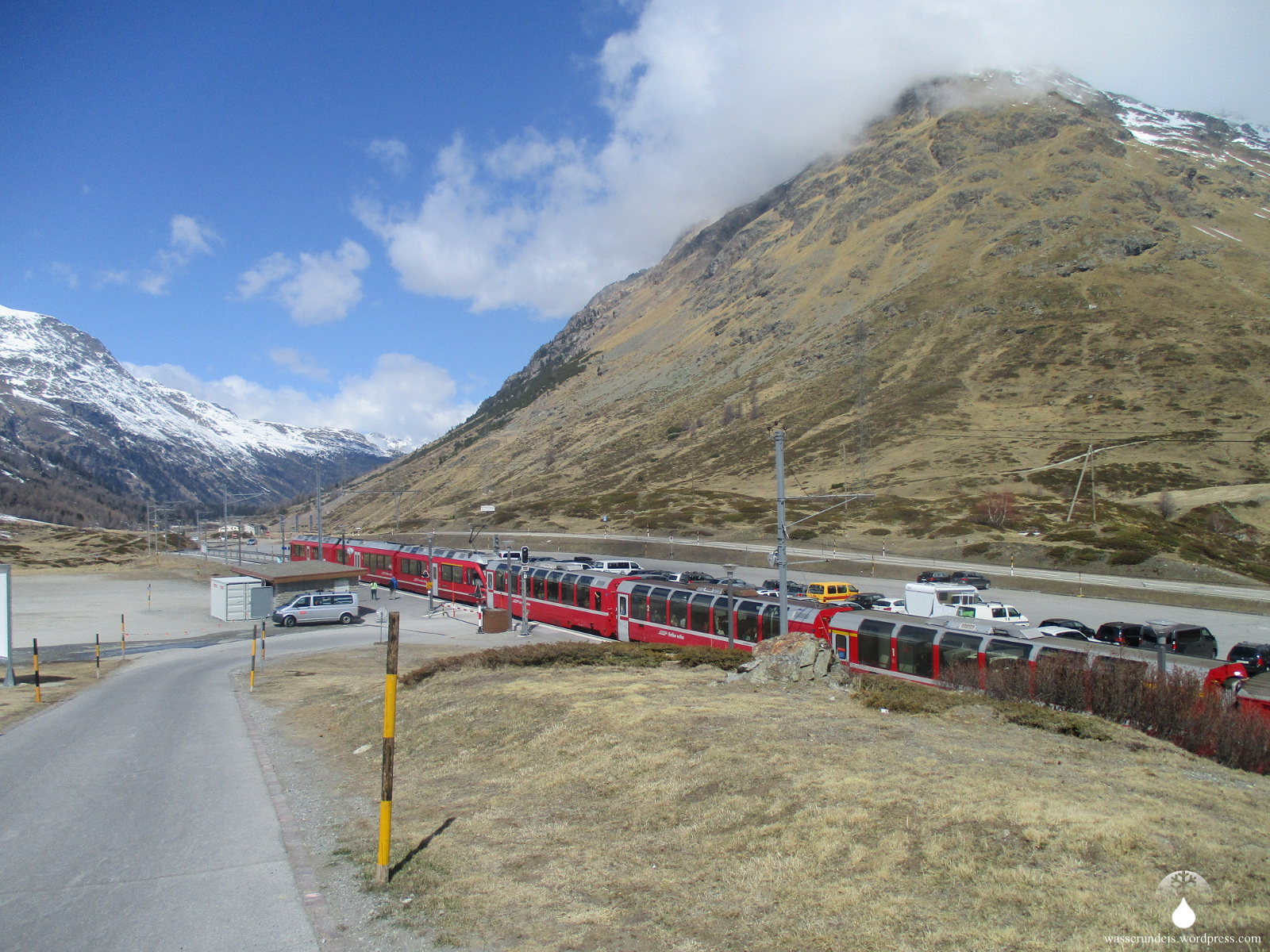 Ich folge dem oberen Inn flussaufwärts bis vor die Tore von St.Moritz und biege dann in Richtung Berninapass ab. Nach einem kurzen Halt am Aussichtspunkt zum Morteratschgletscher erreiche ich mein Ziel kurz vor der Passhöhe. Die Talstation der Diavolezza Seilbahn.