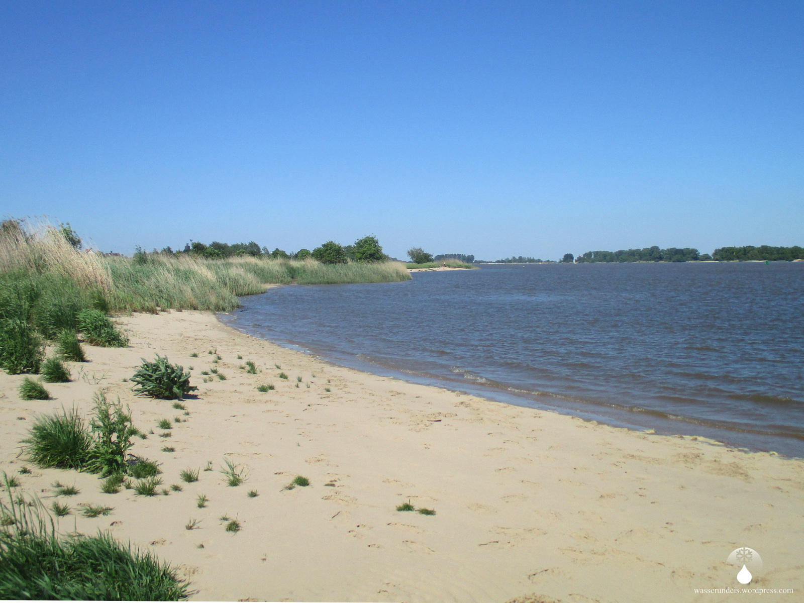 Kleine Bucht am langen Sandstrand an der Unterweser zwischen Oberhammelwarden, Kirchhammelwarden und Brake-Käseburg.