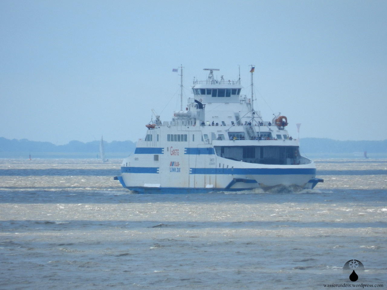 Auf einem vergleichsweise großen, hochseetauglichen Schiff geht es über die Elbe. Die Grete ist 95m lang, 18m breit und fasst bis zu 150PKW auf zwei Autodecks. Daneben findet sich ein großes Salondeck mit Restaurant und Bistro sowie zwei Außendecks. Die Überfahrt dauert ~60 Minuten und kostet für zwei Erwachsene und einen PKW, in der Nebensaison, 33€ bei Ticketkauf am Schalter. Der Blick auf den Weltschifffahrtsweg Elbe ist inklusive.