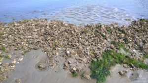 Pazifische Felsenauster im Wattenmeer vor Sahlenburg.