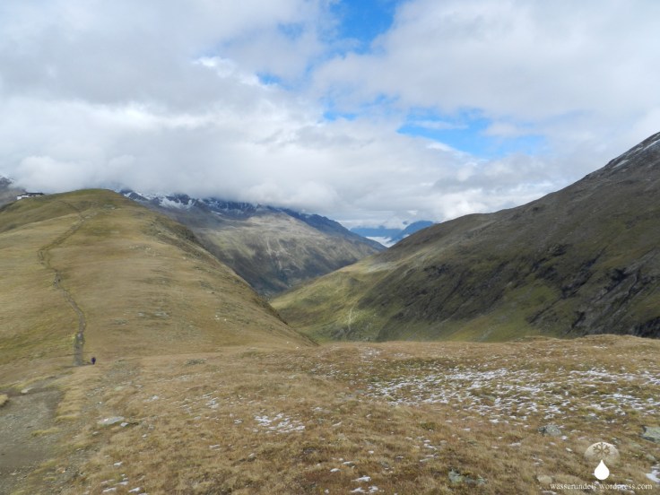 Der Hausberg von Obergurgl ist die Hohe Mut, ein 2.653m hoher „Grashügel. Gemeinsam mit dem südlichen anschließenden, gleichnamigen Bergrücken und den benachbarten Hochtälern, Gaisberg- und Rotmosstal, liegt hier vielleicht das schönste Wandergebiet des Gurgler Tals. Immer im Blick, die eisgepanzerten Bergmassive von Hochfirst (3.405m) und Seelenkogel (3.424m). Die Temperaturen haben im Vergleich zu den Vortagen leicht angezogen. Das Wetter ist stabil und trocken, ab und an lässt sich die Sonne blicken. Der Schnee des Vortages ist unterhalb von 2700m und außerhalb der Gletscher weitgehend Geschichte. Beste Bedingungen zum Wandern.