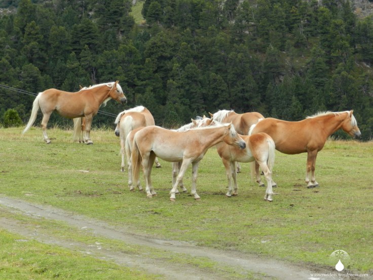 Letztes Hindernis sind die weidenden Pferde, Haflinger, am Gaisberg. Gründlich prüfen sie jede Person die ihren Weideplatz passiert. Wer hier dere stärkere ist, ist den Tieren durchaus bewusst und wird auch offen zur Schau getragen, körperkontakt inklusive.