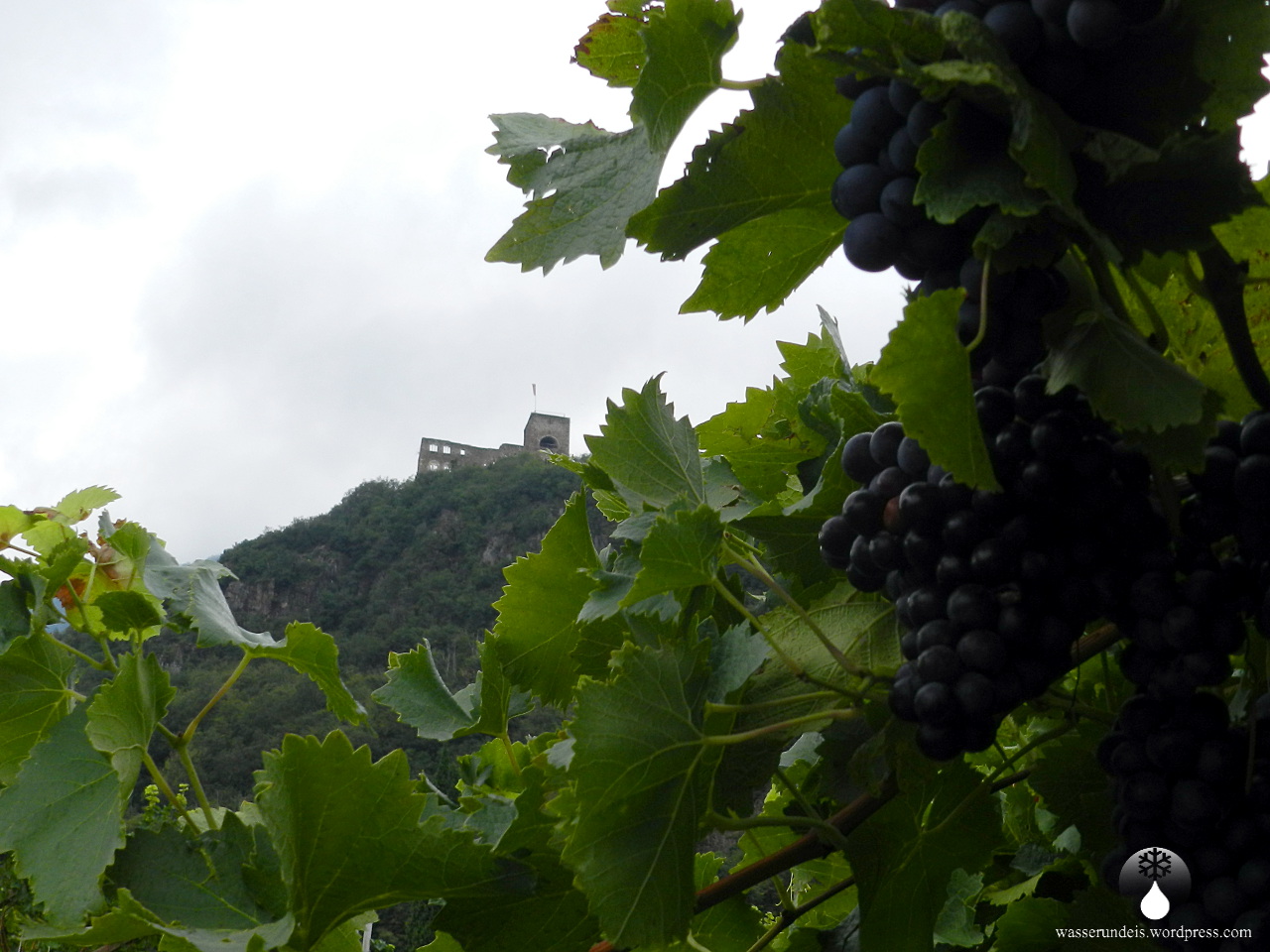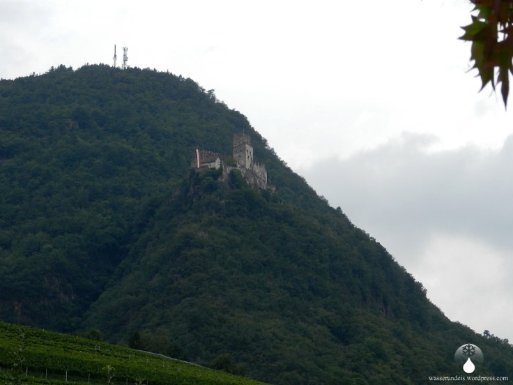 Los geht es im Dorfzentrum von Missian (380m). Zunächst führt der Weg, leicht ansteigend bis zum Ortsrand, dann weiter durch Weinberge bis zum Waldrand (460m). Hinter dem Parkplatz (450m) verlassen wir die Straße und wechseln auf den Fußweg. Von hier an geht es „richtig“ bergauf. In einigen Serpentinen gewinnen wir schnell an Höhe bevor es wieder etwas gemächlicher zugeht. Kurz vor der Burg, auf der schmalen Zufahrtsstraße, nimmt die Steigung noch einmal deutlich zu, dann ist die Burg Hocheppan erreicht (620m). Die rund 900 Jahre alte Höhenburg ist überwiegend eine Ruinie, jedoch gut erhalten, ein Teil wird als Gastwirtschaft, Burgschenke, genutzt.