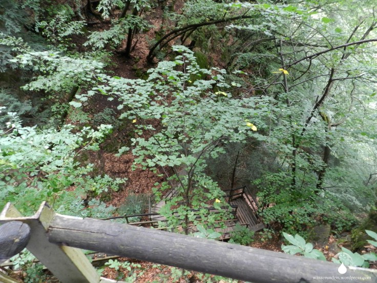 Hinter der Burg führt ein unbefestigter Weg, über Stock und Stein sowie loses Geröll hinab in eine Schlucht (550m). Auf der anderen Seite geht es über Holtreppen wieder in die Höhe, dann recht flach durch den Wald in Richtung Schloss Boymont (590m). Das Schloss ist ebenfalls eine Ruine, jedoch ein wenige Jahre jünger als die Burg Hocheppan und beherbergt auch eine Gaststätte. Schließlich geht es durch Wälder zurück ins Tal.