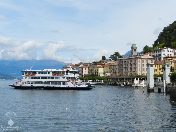 Für das Ticket wurden dann an Bord knapp 27€ fällig (am Schalter an Land sind es gute 5€ weniger). Hunde fahren natürlich kostenlos mit – wir sind ja nicht in Deutschland. Nicht ganz günstig, aber im Vergleich zu den Fährpreisen in Deutschland, von einem Katamaran ganz zu schweigen, in jedem Fall preiswert. Dafür sind wir aber auch in etwas weniger als einer Stunde am Ziel, trotz zahlreicher Zwischenstopps. In der Luftlinie sind es von Domaso nach Bellagio gute 20km, da wir aber im Zick-Zack über den See, fahren, von einem Ufer zum anderen, eine wirklich passable Zeit. Dabei ist es fast nur Beiwerk, dass man dank dieser Route doch so einige Orte von ihrer Sahneseite zu sehen bekommt – vom Wasser aus.