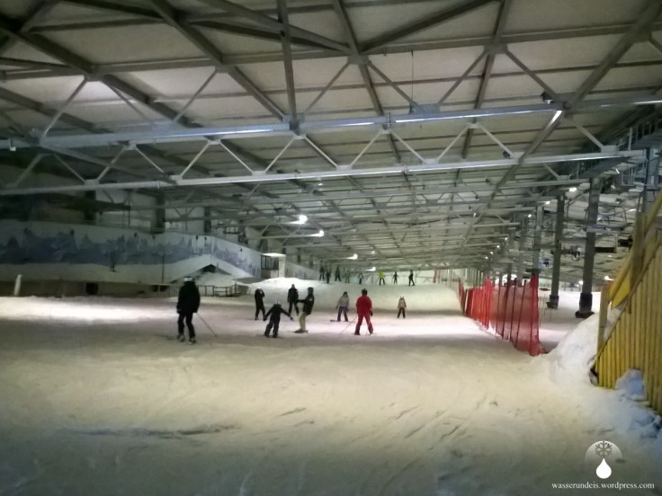 Nach dem Skipasskauf, ich habe mich zu einer 4-Stunden Karte um 28€ breitschlagen lassen, geht es endlich auf die Piste.Die Halle ist gute 300m lang und 80m breit. Als Besonderheit weist die Piste im Alpincenter eine „Geländekante“ auf. Bietet also einen flachen und einen steileren Pistenabschnitt. Unten befindet sich ein etwas separierter Anfängerbereich.