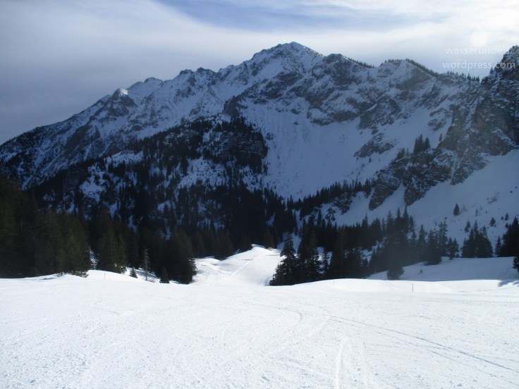 Neben der Gondelbahn surren hier oben noch drei weitere Anlagen. Zwei Schlepplifte und eine 4er Sesselbahn. Hauptanlage ist der Aggensteinlift welcher alle Abfahrten erschließt. Vor allem die „Hintenrumabfahrt“, unter den Felswänden des Aggensteins, ist abwechslungsreich, wunderschön gelegen und hat eine ansprechende Länge. Die übrigen Hänge fallen da etwas ab. Trotzdem ist es schön auch mal im Sessellift die Beine hängen zu lassen. Vor allem da der Schnee in der Früh unangenehm hart, fast schon eisig ist. Erst die Sonne schafft da nach und nach Abhilfe.