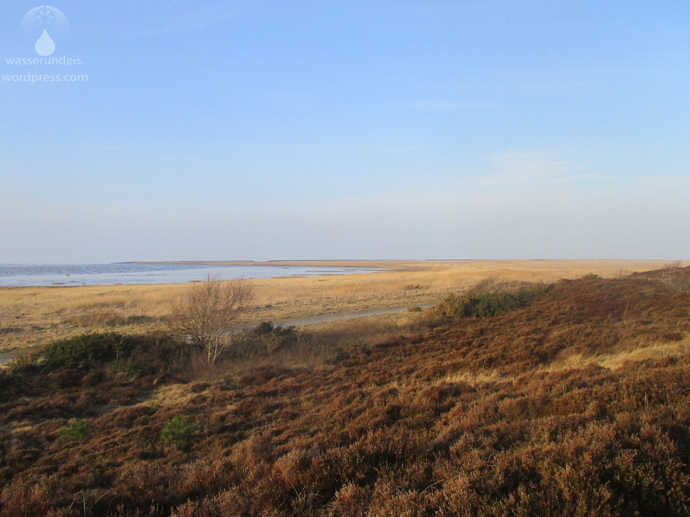 Schnell schlagen wir einen Weg in Richtung Küste ein und gelangen so zum sogenannten Witte Kliff. Einer Geestabbruchkante in den (bewaldeten) Wittendünen mit einem vorgelagertem Gewässer, dem sogenannten Albertsee. Dieser ist aber inzwischen weitegehend verlandet und mit jungen Bäumen bestanden. Die 15m hohe Sand-Abbruchkante ist ein netter Aussichtspunkt mit schönem Blick auf das Wattenmeer.