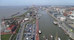 Neuer Hafen von der Aussichtsplattform Sail City Bremerhaven.