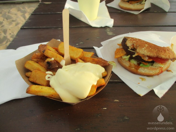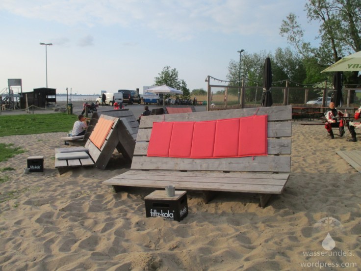 Highlight des Örtchens ist aber unbestritten der ehemalige Fähranleger. Hier verkehrte bis zur Eröffnung des Wesertunnels die Fähre nach Kleinensiel auf der westlichen Seite des Flusses. Dieser wurde umgestaltet, erhielt einen Parkplatz samt Wohmobilstellplätzen sowie einen Spiel- und Bolzplatz. Im Sommerhalbjahr findet sich außerdem eine Fischbude und ein nettes Strandbistro, die Strand- bzw. Weserperle. Hier warten gemütliche Sitzgelegenheiten mit Weserblick, auch für Speis und Trank ist gesorgt. Bei den Getränken orientiert man sich in Richtung Elbmetropole, heisst neben Kaffee entsprechend Astra und Fritz-Cola. Beim Essen wird, abgesehen vom Kuchen, vor allem die vegetarische und vegane Küche bedient. Die Pommes sind super, die Burger (ebenfalls vegetarisch) nicht erwähnenswert.
