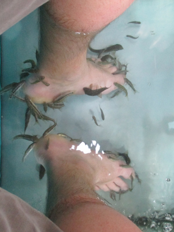 Daneben findet man in der Innenstadt eine Vielzahl von Fisch-Spa Einrichtungen, einem Trend aus Asien. Wer sich also schon immer mal von Fischen die Füße pflegen lassen wollte ist hier gut aufgehoben. Eine kitzlige, kurzweilige Erfahrung.