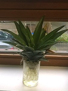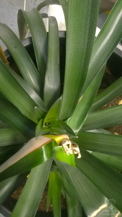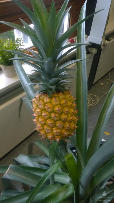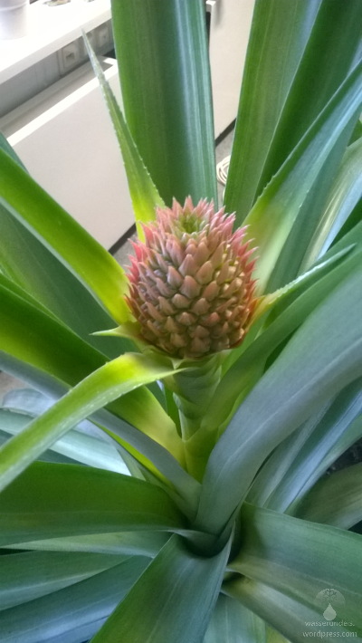 Eines Tages im Jahre 2014, ich frühstückte gerade eine frische Ananas, kam die Frage auf, was es eigentlich mit dem Schopf auf der Frucht auf sich hat. Ein kurzer Blick ins Internet schuf schnell Abhilfe…Praktischerweise stand dort auch gleich, dass man aus diesem Schopf eine ganze Pflanze herranziehen kann. Gesagt, getan.
