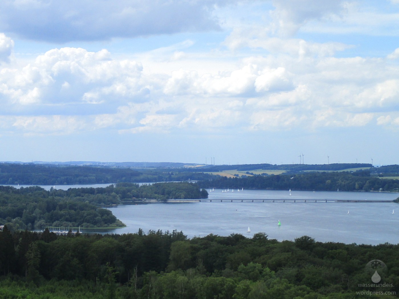 Der flächenmäßig größte Stausee des Sauerlandes ist der Möhnesee. Dieser zwängt sich zwischen dem Höhenzug des Haarstrangs im Norden und den bewaldeten Hügeln des Arnsberger Waldes im Süden. Die Wasserfläche beträgt bei Vollstau etwas mehr als 10km². Der Möhnesee speichert bis zu 135 Mio m³ Wasser zum Hochwasserschutz, zur Stromgewinnung, vor allem aber zur Niedrigwasseraufhöhung der Ruhr. Ihr Wasser wird schließlich zu Trinkwasser aufbereitet und versorgt praktisch das gesamte Rurgebiet – gut zu sehen etwa in den Ruhrwiesen an meinem früheren Wohnort Bochum.