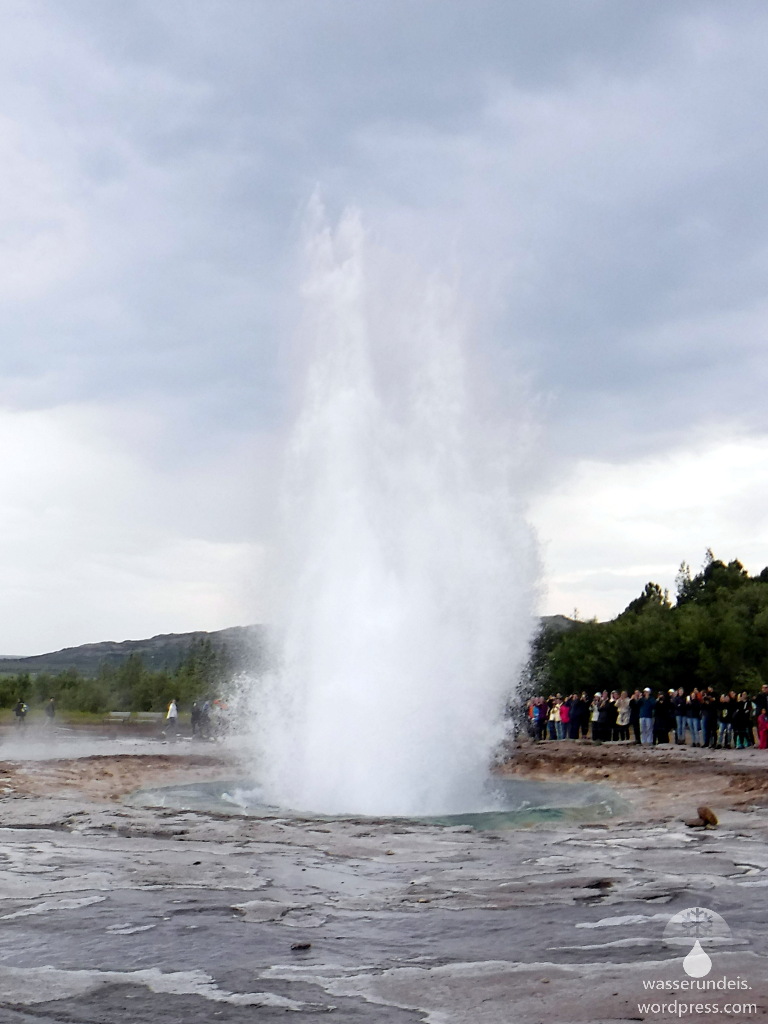 Eruption des Geysirs Strokkur im vulanisch aktiven Tal Haukaladur auf Islands Golden Circle.