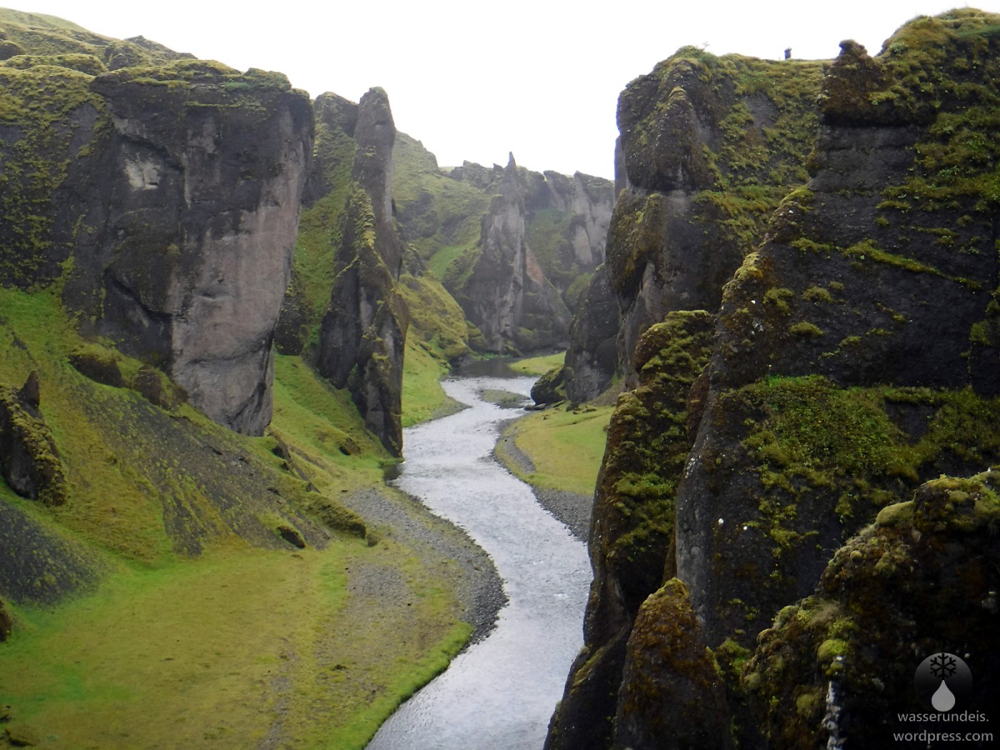 Kaum 15 Kilometer hinter dem Lavafeld findet sich die durch zahlreiche Film- und Fernsehproduktionen bekannte Schlucht Fjaðrárgljúfur. Der bizarre Canyon enstand und ensteht durch den Fluss Fjaðrá. Die Kraft des Wassers hat sich, ausgehend von den Eiskappen im Isländischen Hochland, innerhalb von Jahrtausenden, einen Canyon in das Palagonitgestein gefressen. Heute ist Fjaðrárgljúfur bis zu 100m tief und zwei Kilometer lang.