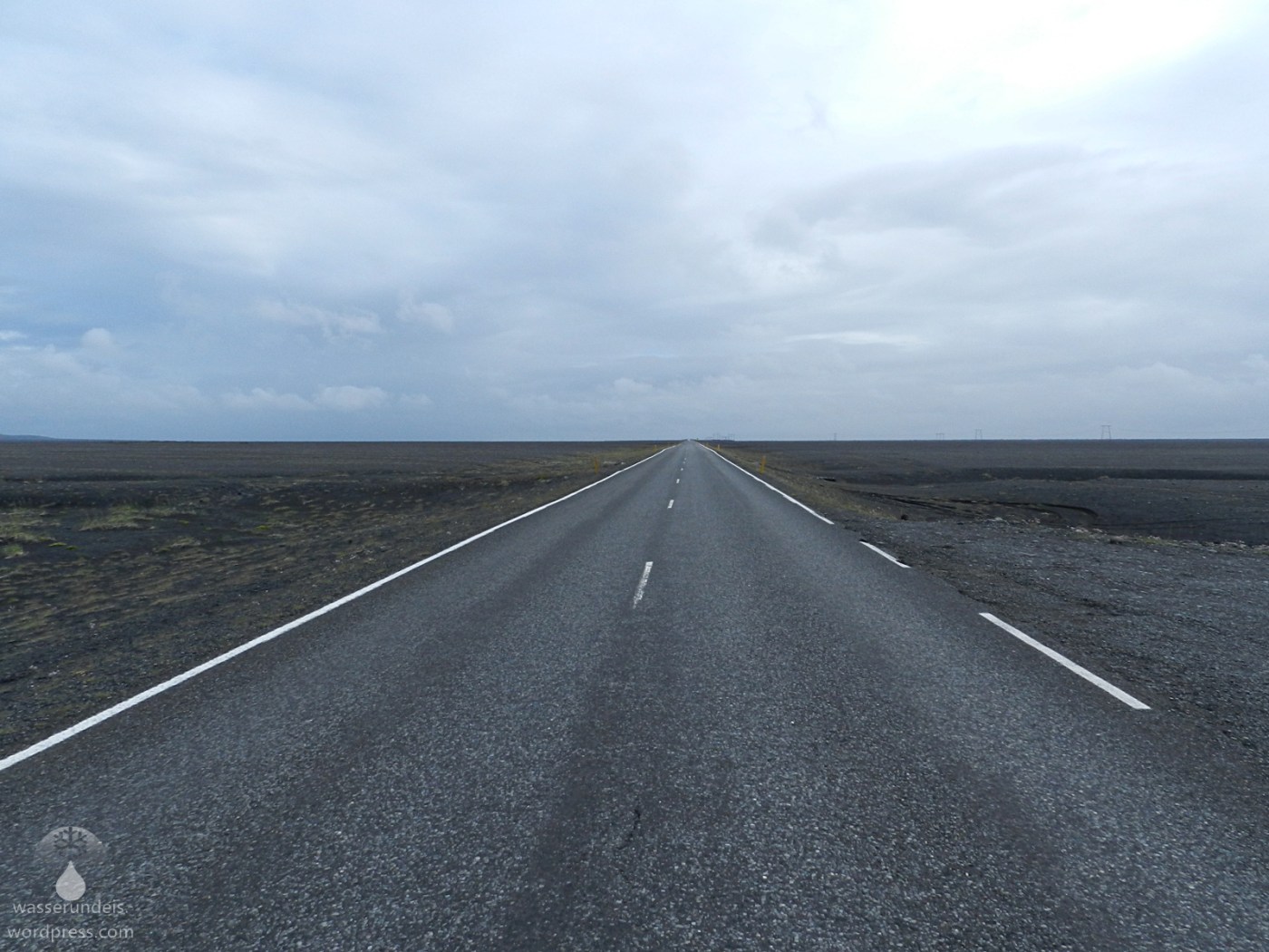 Im Norden bildet der gigantische Skeiðarárjökull, der größte südliche Auslassgletscher des Vatnajökull, auf 16 Kilometern Breite den Horizont. Im Süden der Nordatlantik. Durch die Wolken wird der Blick dorthin aber etwas getrübt, was die Ebene noch gigantischer wirken lässt. Bei Trockenheit, zugegeben in Island eher selten, kann es hier, am Rande der Arktis, zu großen Sand- und Staubstürmen kommen.