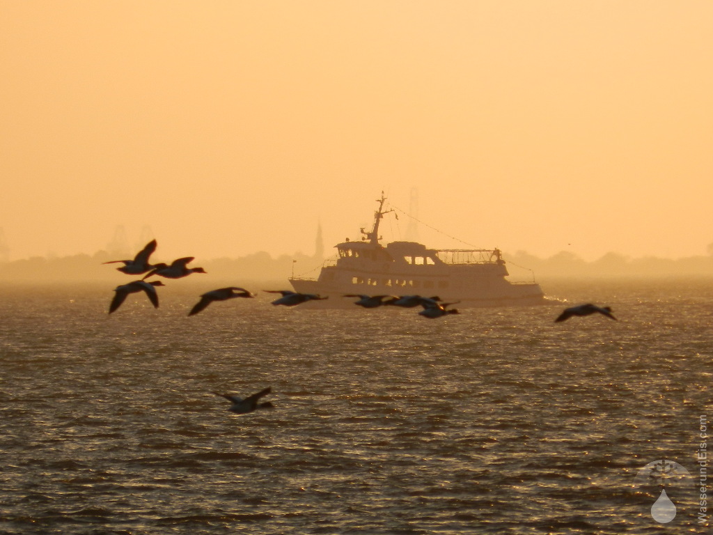 Fahrt in den Sonnenuntergang mit der MS. Geestemünde.