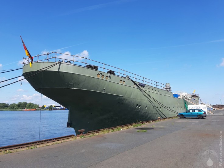 Derzeit liegt der Rumpf der Gorch Fock an der Labradorkaje im Bremerhavener Fischereihafen.