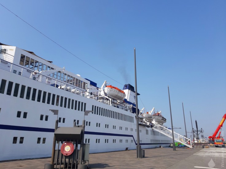 Die „Berlin“ ist im Vergleich zu den anderen Riesen ein eher kleines Schiff. Da liegt die Vermutung nahe, dass sie nur an der Seebäderkaje liegt, weil sie es kann. Für die Abfertigung der je 350 An- und Abreisenden ist der ganze Willy-Brandt-Platz gesperrt. Ganz nebenbei stinkt die Dieselfahne des Schiffs die Innenstadt voll. Schlimm genug wenn die Schiffe am zwei Kilometer weiter nödlich gelegenen Kreuzfahrtterminal ihre Motoren laufen lassen anstatt saubereren Landstrom zu nutzen. Vermutlich knallen, in anbetracht dieses „Coups“ bei den stätischen Touristikern die Sektkorken.