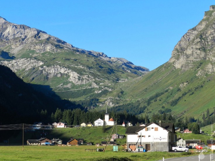 An der Ostrampe des Klausenpass liegt die größte Alp, zu deutsch Alm, der Schweiz. In diesem, rund 8 Kilomter langen Hochtal, weiden im Sommer bis zu 2.000 Rinder. Ganz ohne Zäune. Überall bimmelt es und manchmal stehen auch ein paar Kühe auf der Straße… Die sommerliche Produktion von Alpkäse läuft auf Hochtouren – nicht nur für die touristische Folklore, auch wenn man das meinen könnte. Ein wunderschönes Fleckchen Erde. Grüne Wiesen, Schroffe Berge und weiße Spitzen – die Schweiz wie aus dem Bilderbuch.