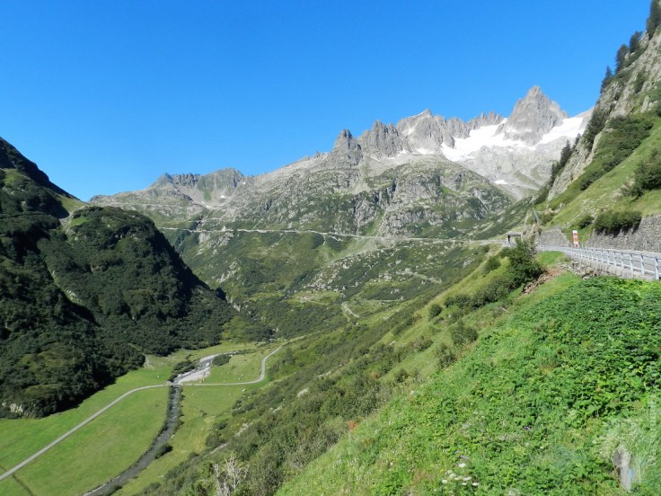 Die Sustenpassstraße ist eine der „neueren“ Schweizer Passtraßen. Sie verbindet die Kantone Uri und Bern, existiert in dieser Form erst seit 1945, ist 45km lang und gut ausgebaut. Die Passhöhe liegt 2.224m. Die Straße ist vor allem eine touristische und nur im Sommerhalbjahr geöffnet. Landschaftlich ist die Strecke einfach nur ein Traum. Von dunklen Bergwäldern geht es durch grüne Almwiesen bis nahe an die Schroffen Gipfel und gleißenden Gletscher der Berner Alpen hinauf.