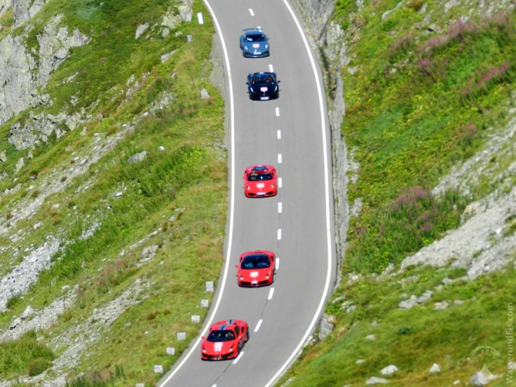 Leider merkt man hier oben, dass für viele vor allem die Straße selbst das Erlebnis ist. Motorräder dröhnen durch das Tal, ganze Gruppen von Sportwagenfahrern präsentieren ihre Protzkarossen vor der Bergkulisse, wobei – es geht wohl eher um die Geschosse. Manche Hobbys sind schwer zu verstehen…