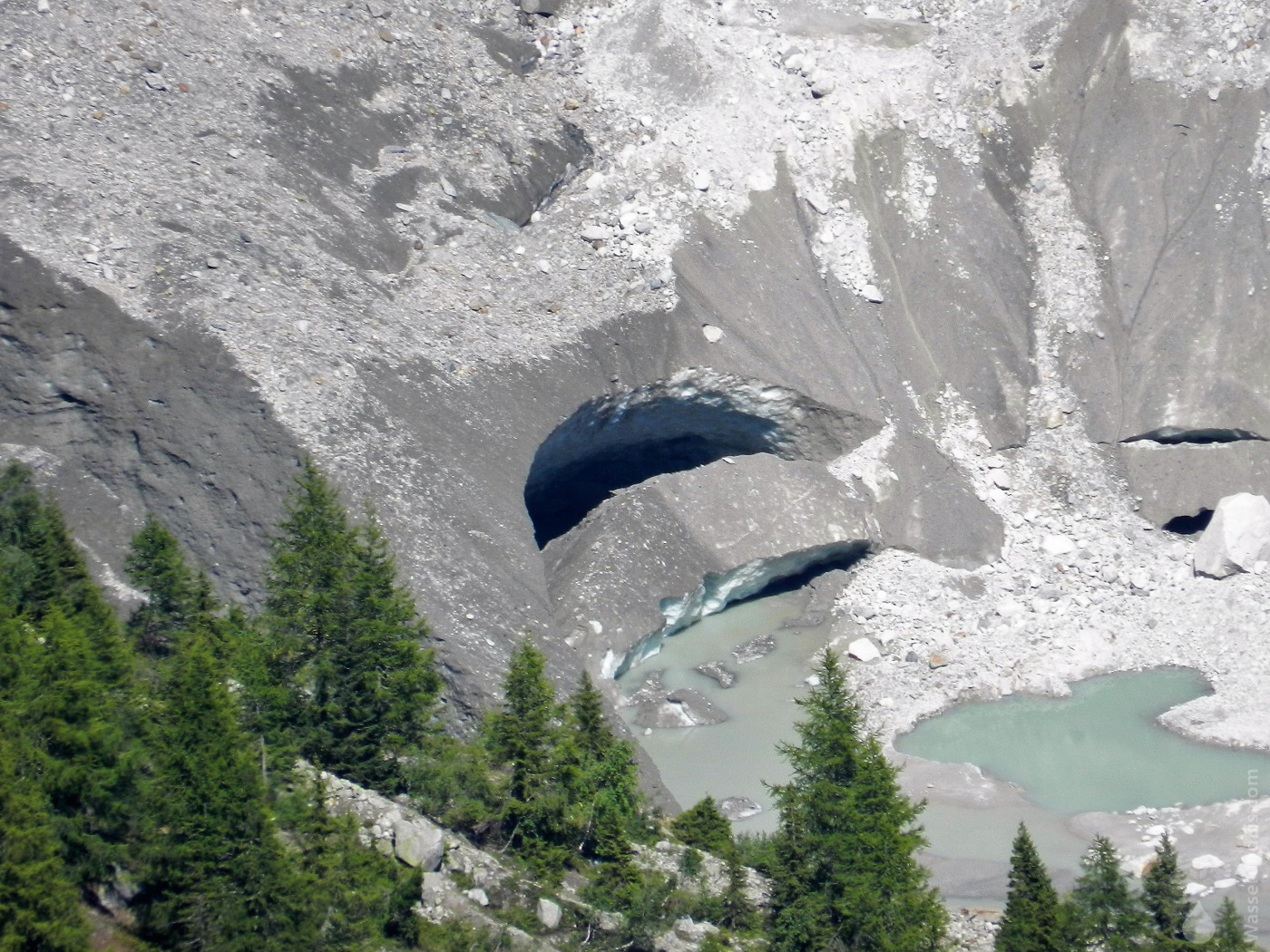 Der Ursprung des Fiescherbachs am Maul des Fieschergletschers.