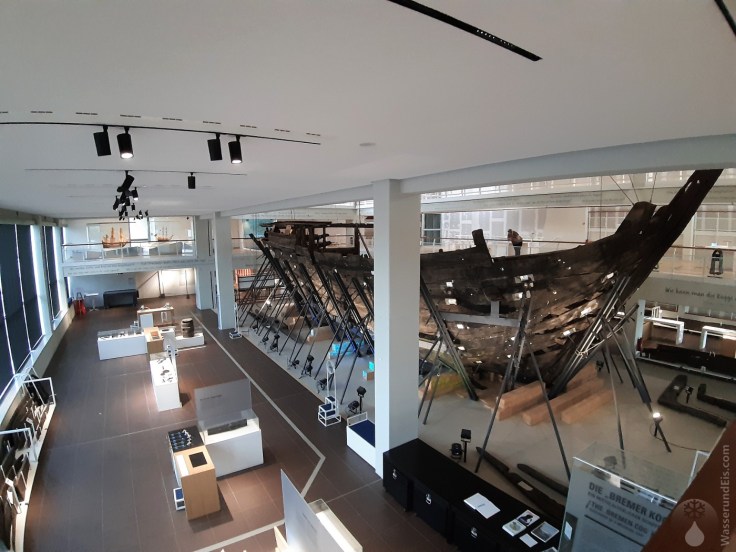 Die Koggehalle wurde 1972 fertiggestellt, und ist seit ihrer Restaurierung, Heimat der berühmten Bremer Kogge.  Im Oktober 192 stieß man, in Bremen, bei einer Hafenerweiterung, auf ein im Schlick verborgenes Schiffswrack aus Eichenholz. Die Überreste eine Kogge aus der Zeit der Hanse um 1380. Das bis dahin einzige gut erhaltene Schiffswrack aus dieser Zeit. Die Wrackteile wurden geborgen und eingelagert und mittels einer speziellen Flüssigkeit konserviert. Schließlich wurden sie, ab 1972 im Bremerhavener Schifffahrtsmuseum zusammengesetzt und das Schiff weitestgehend rekonstruiert. Der Aufbau wurde im Jahr 2000 abgeschlossen, seitdem ist es auch für die Öffentlichkeit zu besichtigen.