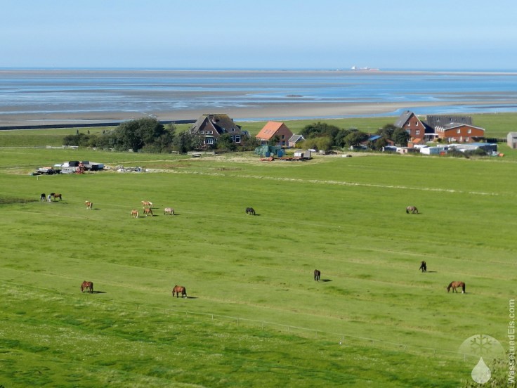 Nach dem schlickigen Spaziergang auf dem Wattenweg haben wir (fast) einen ganzen Tag Zeit um uns auf der Insel umzusehen. Neuwerk misst etwas mehr als 3km² und ist heute einen von Wiesen und Weiden geprägte, grüne Marschinsel. Die rund 40 Bewohner leben allerdings inzwischen weitgehend vom Tourismus, die Landwirtschaft ist nur noch ein Nebenerwerb.