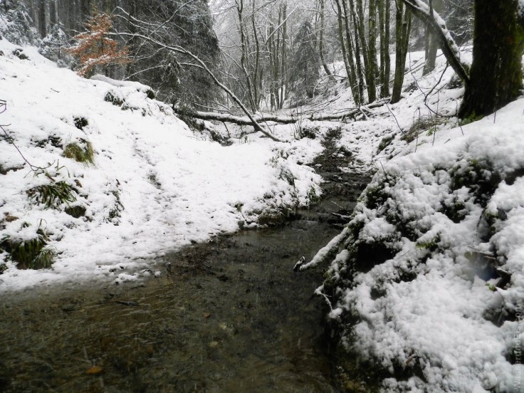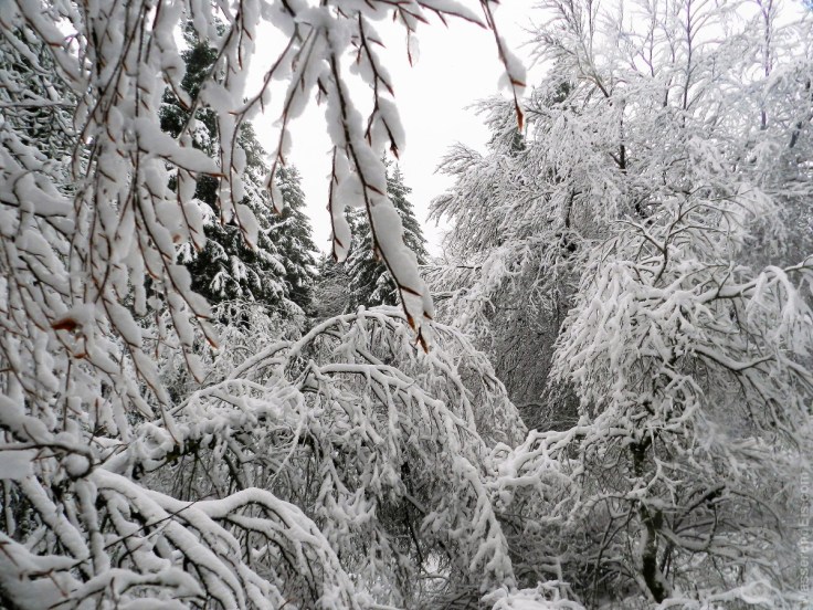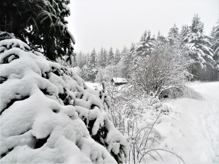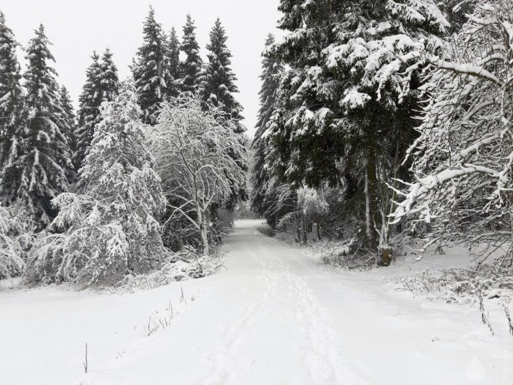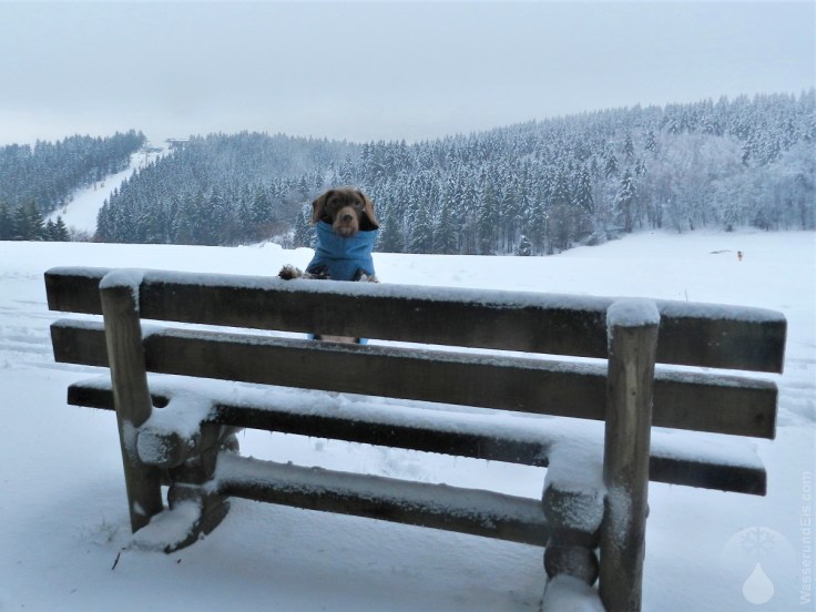 Das Wochenende um den 3. Advent war vom ersten, ernsthafen Wintereinbruch in den Hochlagen des Sauerlandes geprägt. Oberhalb von etwa 700m fielen in kurzer Zeit fast 20cm nasser Neuschnee, was die Schneedecke auf eine stattliche Höhe von beinahe 30cm ansteigen ließ. Unterhalb von 600m blieb es grün. Da die Wetterberichte bereits das jähe Ende des Wintereinbruchs inklusive dem vollständigem Abtauen der Schneedecke angekündigt hatten, nutzten wir bereits den Samstag, trotz starken Schneefalls, für einen ausgedechnten Winterspaziergang. Wir wanderten, rechts planlos über die Höhen und durch die verschneiten Wälder rund um den Landal-Ferienpark. Schneehöhen von mehr als 20cm haben für uns einen großen Vorteil, das Weiße Gold hindert unser kurzbeiniges Teammitglied daran die Wälder auf eigene Faust zu erkunden.