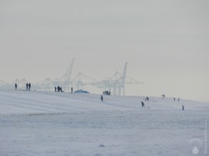 Schnee, Deich, Schlittenfahren, Schlitten, Bremerhaven