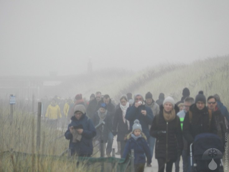 Schön im Nebel zu wandern, aber ich hätte es nicht für möglich gehalten, dass dort so ein Auftrieb sein würde. Im Winter an der Küste ist in meiner Erinnerung immer unbedingt der Hund verfroren, oder liegt das nur an der Tatsache, dass, egal wo, an den Feiertagen Zuflucht außerhalb der eigenen vier Wände gesucht wird. Weihnachten und Neujahr ist Hochsaison?. Die Hundewiese ist ja eine freundlich Geste, aber mir sind solch Auslaufflächen unsympathisch, weil es zuviel Leute auf einer solchen Fläche gibt, die die Hinterlassenschaften ihrer Hunde einfach so liegen lassen und der Platz in kürzester Zeit ungut verdreckt ist.