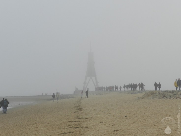 Fast schon traditionell begingen wir am Neujahrstag unseren Spaziergang am Strand von Duhnen und Döse. Trotz des Trüben und kalten Wetters, die Sicht reichte kaum weiter als 100m, hatten tausende andere die gleiche Idee. Während allerdings die Promenade einer Flaniermeile glich, konnte man am Strand angenehm spazieren – ohne gleich jemanden vor die Füße zu treten und zwar auch mit freilaufendem Hund.