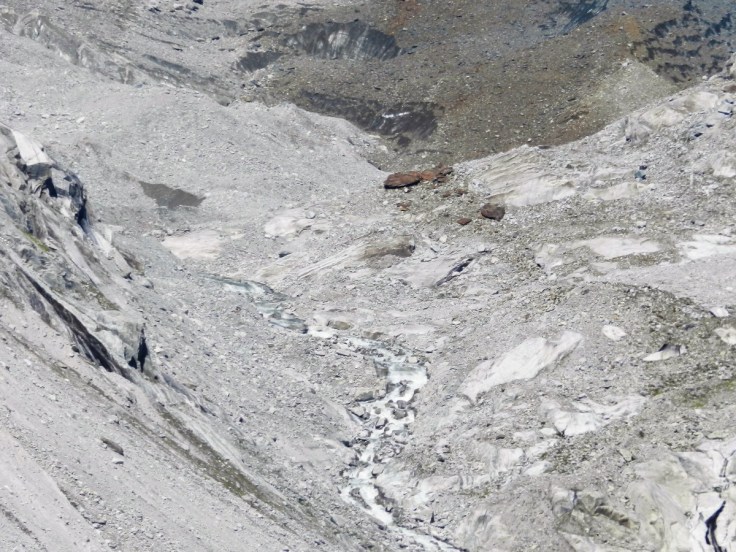 Der Mittelaletschgletscher ist ein kleiner Talgletscher am Südhang des Aletschhorns (4.195m), gegenüber dem Eggishorn, nahe dem Großen Aletschgletscher mit dem er sich bis weit ins 20. Jahrhundert vereinigte. Bei meiner Wanderung von Bettmerhorn zum Märjelensee hatte ich einen guten Blick auf den kleineren Eisstrom.