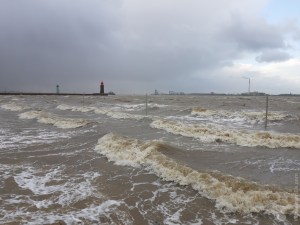 Sturmflut am Weserstrandbad Bremerhaven.